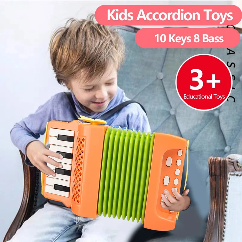 Kids Accordion Musical Instruments Indoor and Outdoor 10 Keys 8 Bass Playing Musical keyboard Educational Toys Gift For Children