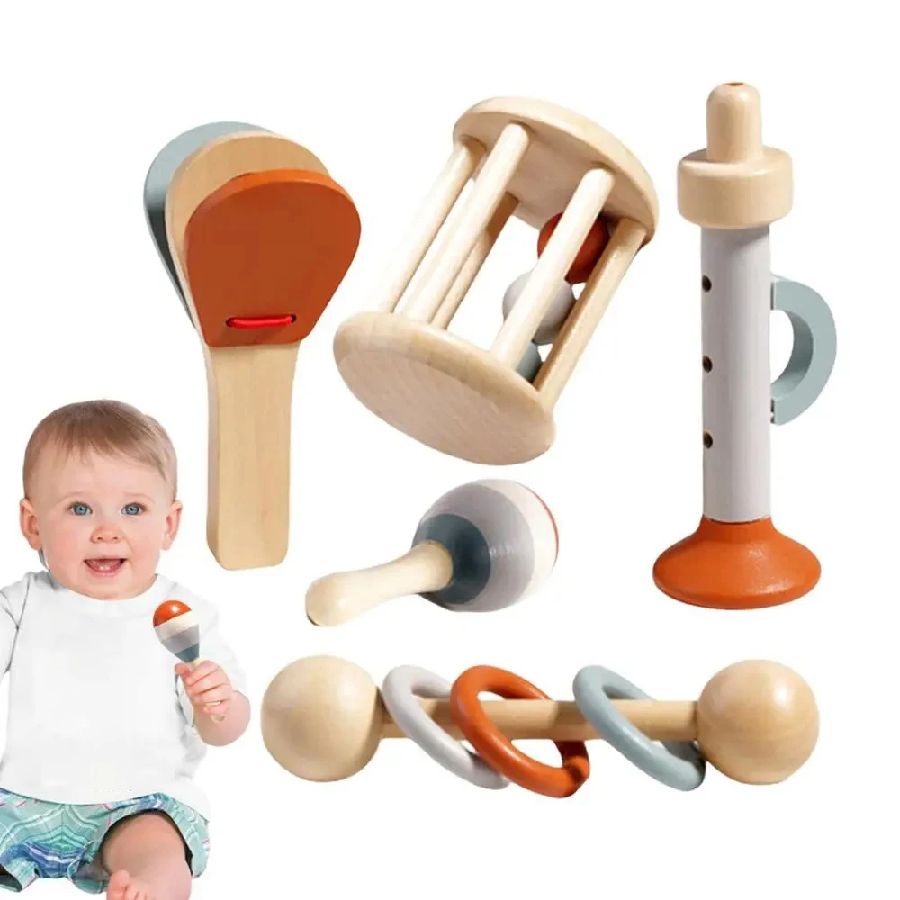 EDUCATIONAL SENSORY PLAY - This wooden musical instrument set is great for kids ages 3+, perfect for the musical awakening through the exploration of sounds and creative-free expression. Designed for interactive learning, rhythm recognition and brain development. Helps enhance hand-eye coordination and boost concentration skill. The set offers everything you need to introduce toddlers to rhythm and harmony through play