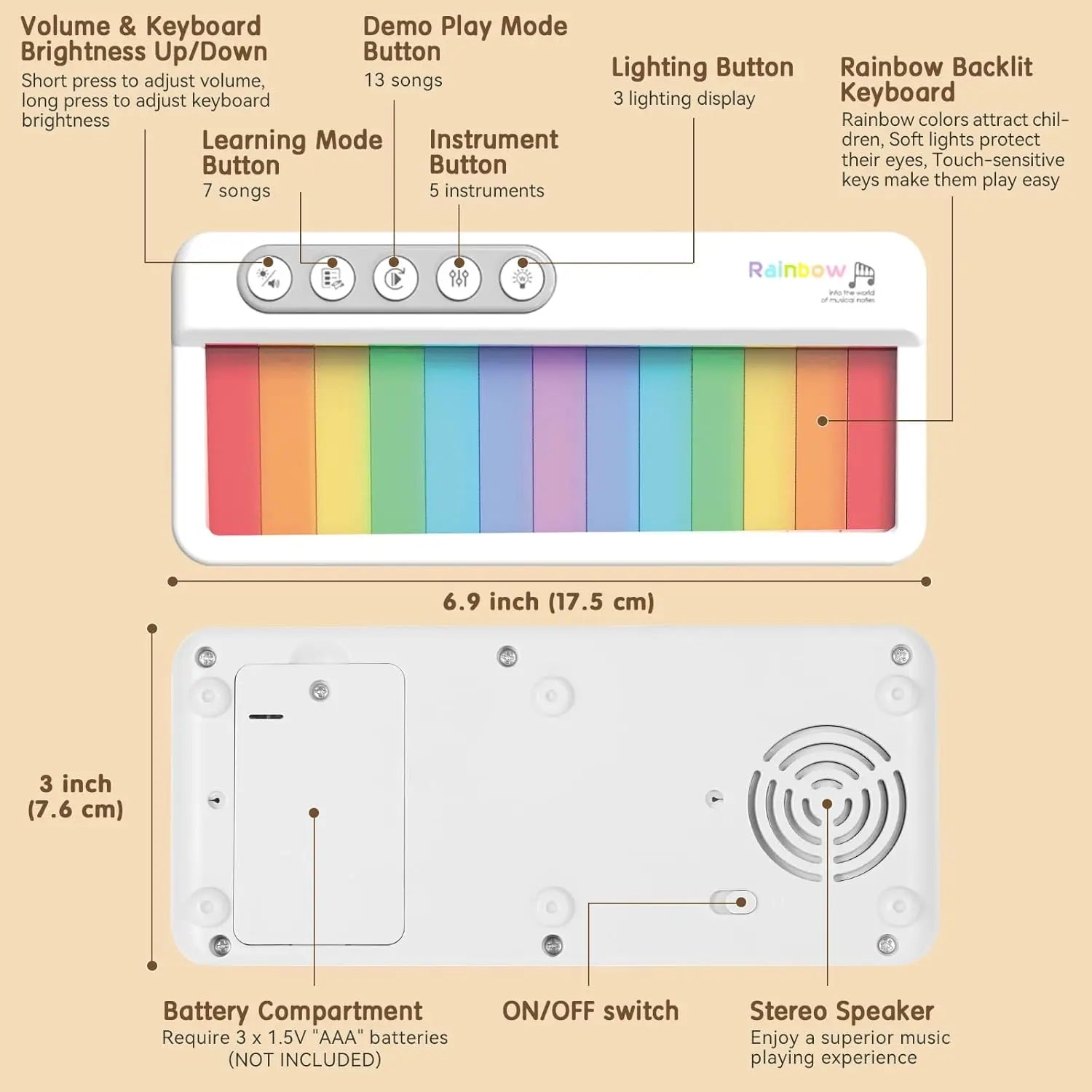 Kid's Musical Instrument Toys Multifunctional Electronic Piano Baby Pocket Piano Musical Instrument Baby Rainbow Light Music Box