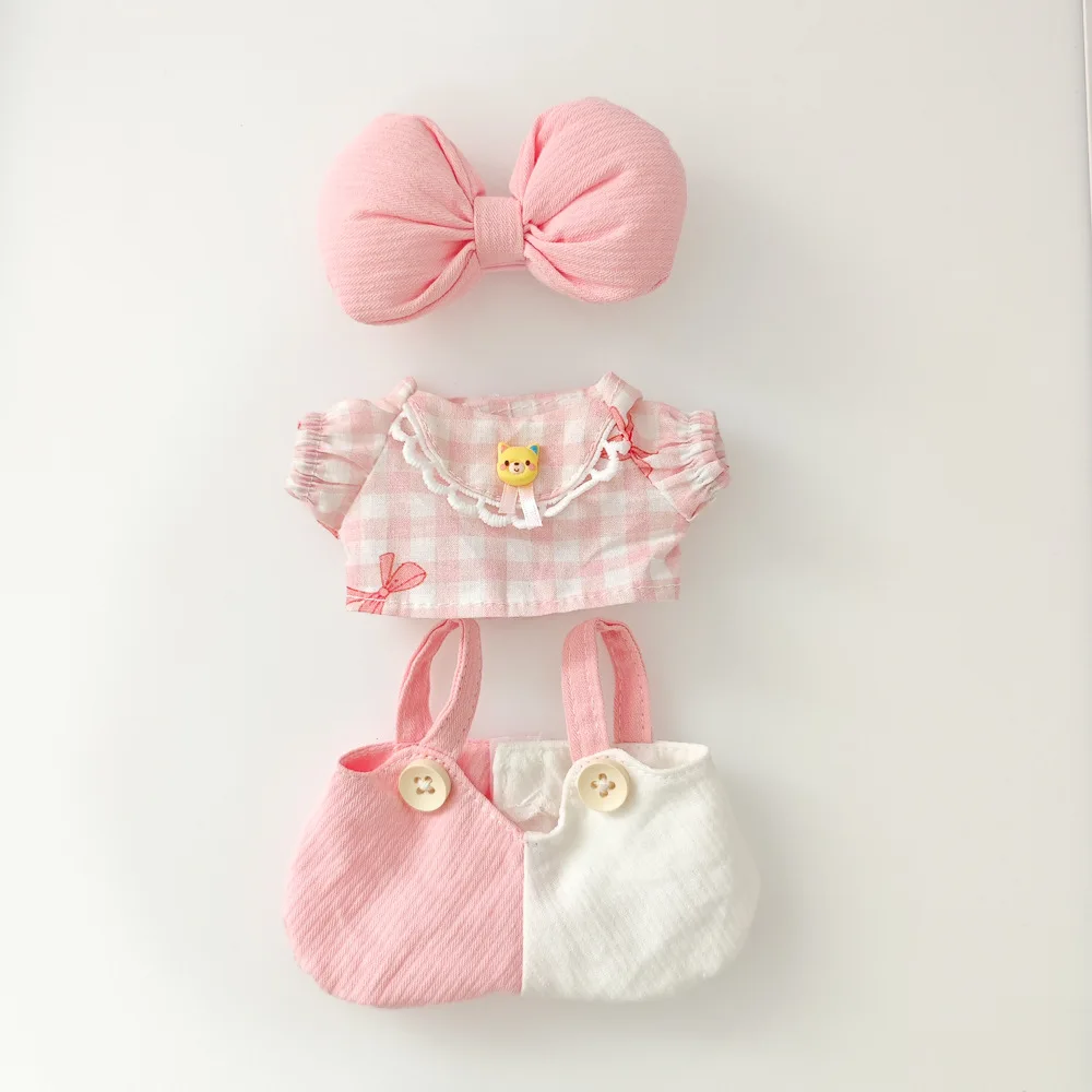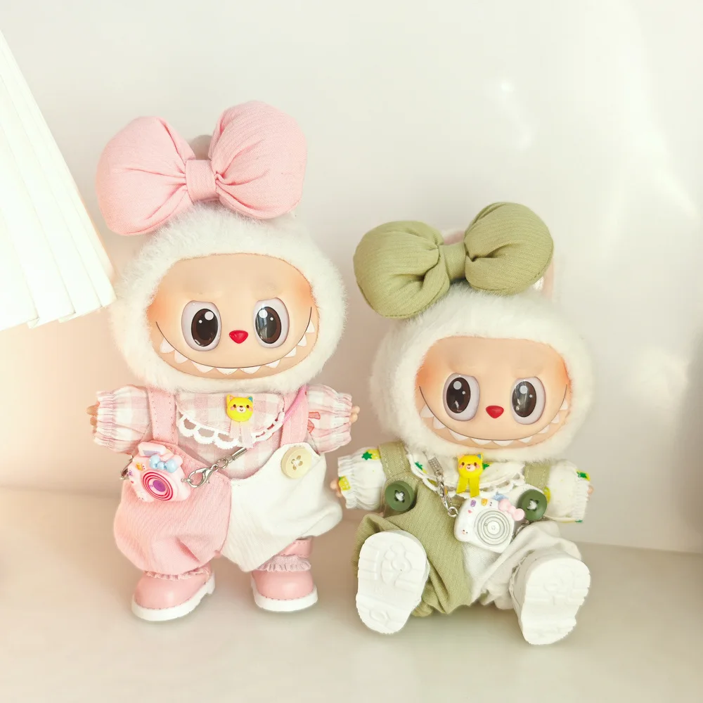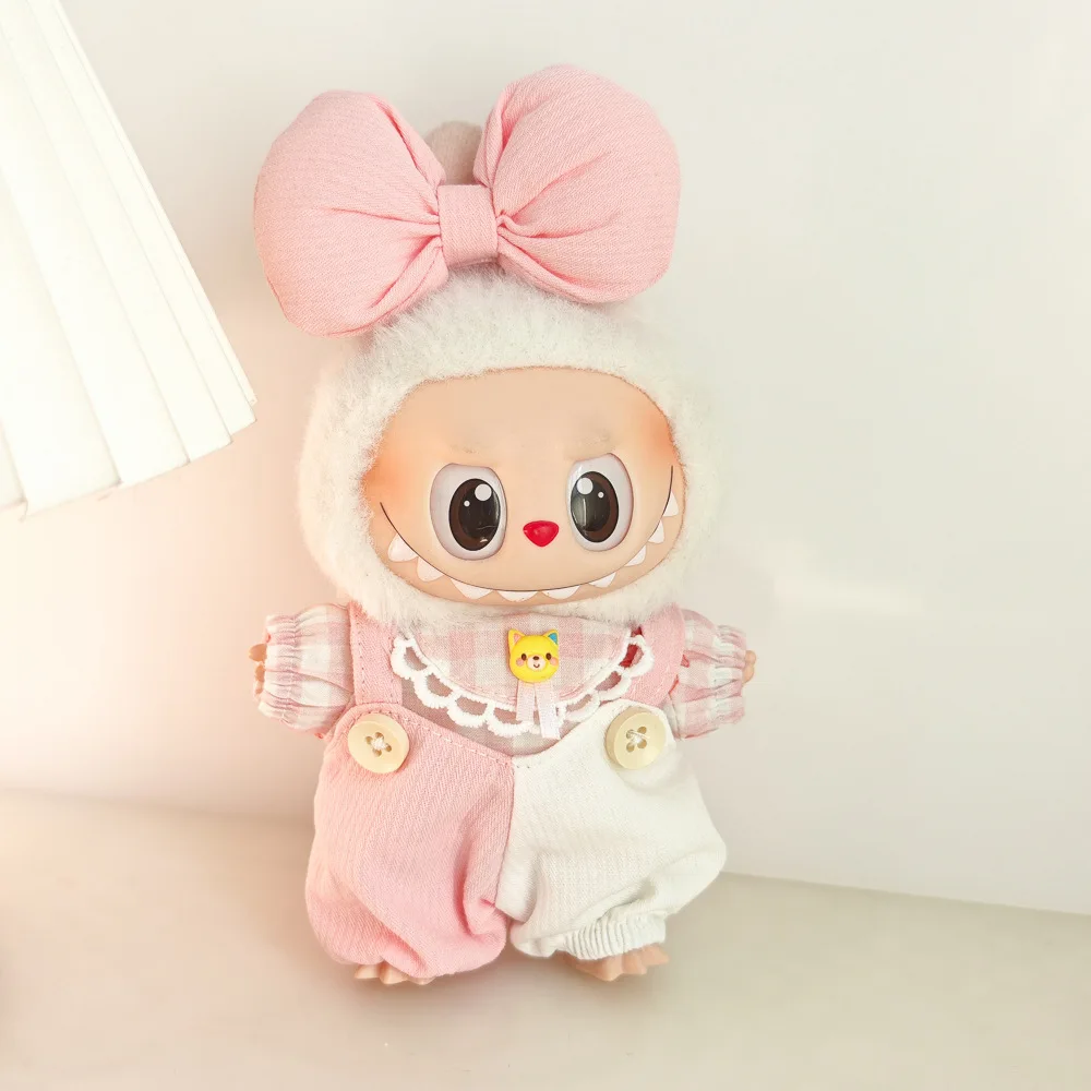 View compareDoll Clothes For 15/17cm Labubu Plaid Shirt Jumpsuit Bow Tie Headdress 3PCS/Pack Plush Cotton Idol Doll Universal Accessories